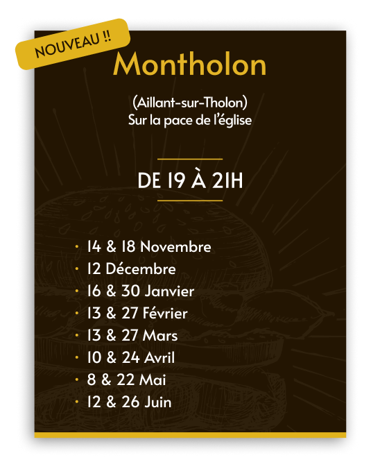 Retrouvez nos burgers gourmands et nos frites maison, préparés avec des produits frais et locaux, directement près de chez vous. Notre foodtruck parcourt régulièrement les communes autour d'Auxerre pour vous offrir une expérience culinaire unique